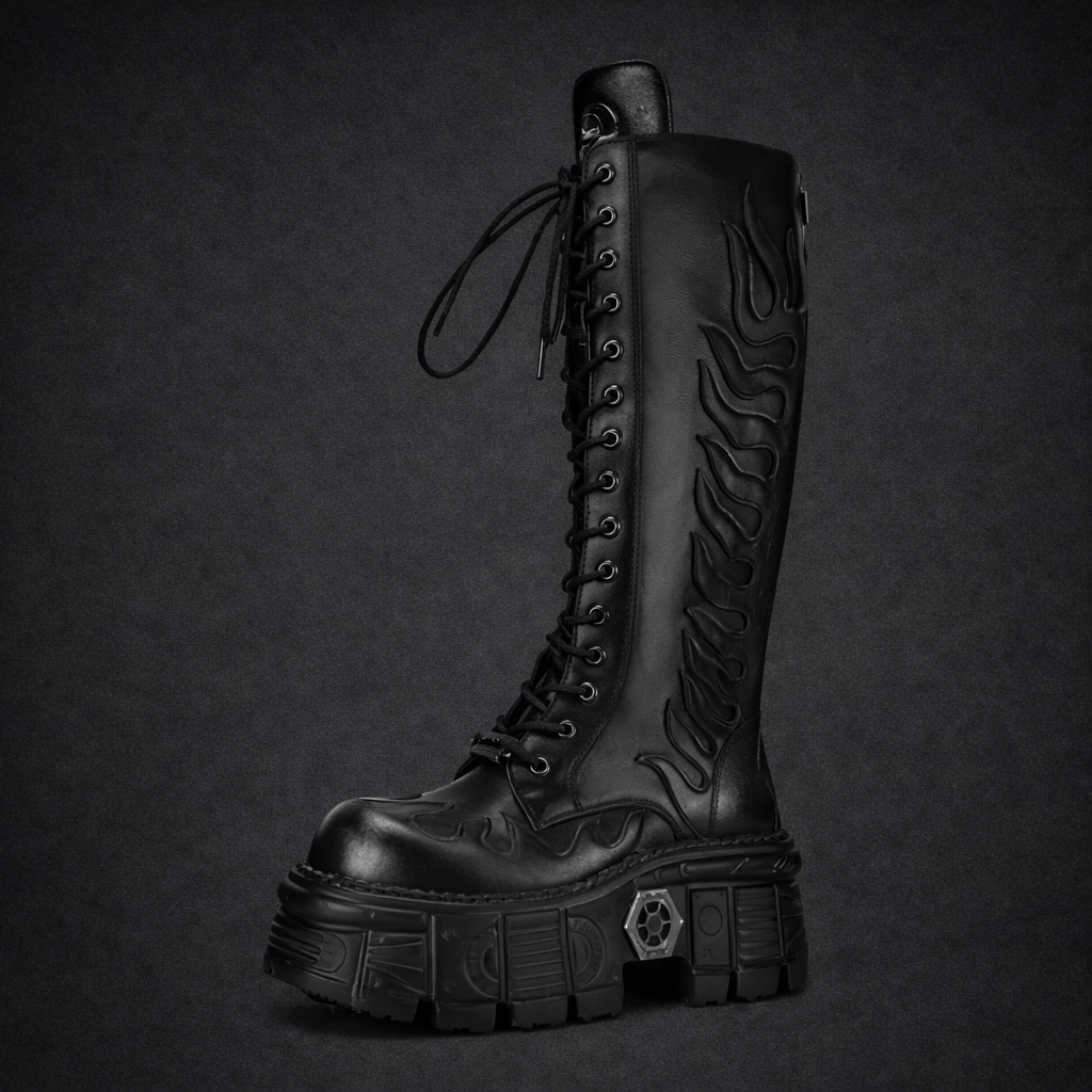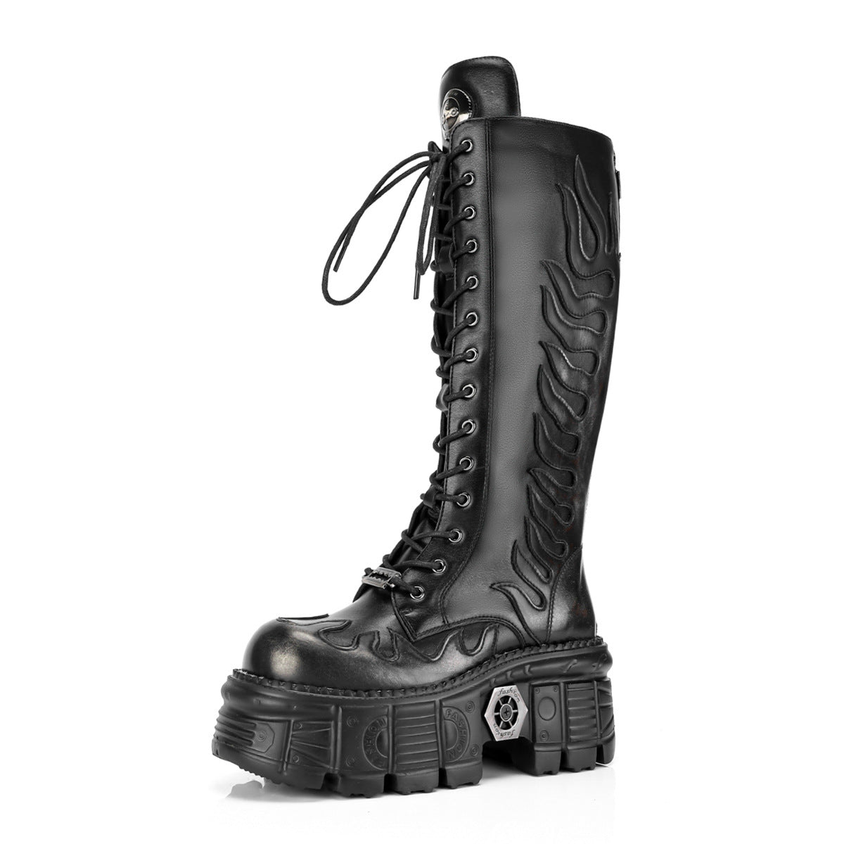 High-heeled lace-up mid-calf shoes